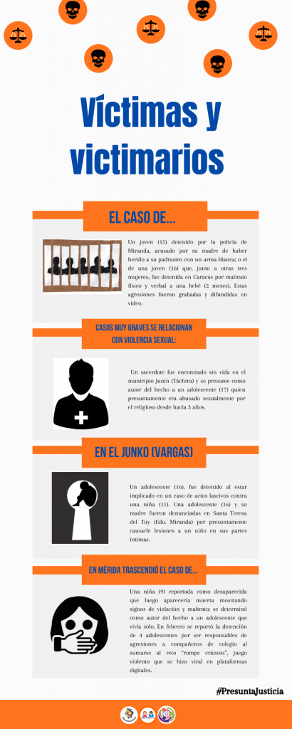 The present review refers to the reports of Venezuelan news outlets about criminal cases involving adolescents. As with many other issues, there’s no official data about this topic in the country. The most recent document about the involvement of adolescents in the commission of crimes is from 2018, when the Supreme Tribunal of Justice issued a brief bulletin regarding the situation of 8,346 prosecuted adolescents, 14% of which were imprisoned.