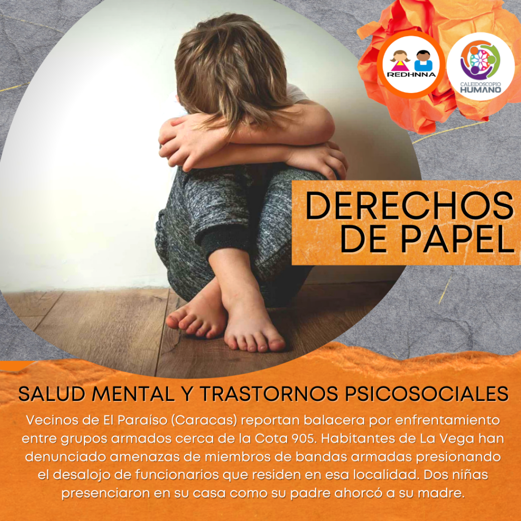 Vecinos de El Paraíso (Caracas) reportan balacera por enfrentamiento entre grupos armados cerca de la Cota 905. Habitantes de La Vega han denunciado amenazas de miembros de bandas armadas presionando el desalojo de funcionarios que residen en esa localidad. Dos niñas presenciaron en su casa como su padre ahorcó a su madre.