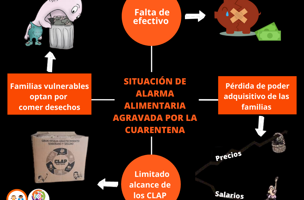 Articles 4 and 27 of the CRC establish that States must guarantee the social and cultural rights of children, adolescents and their families, including access to nutritious food. In Venezuela, the situation of food emergency exacerbated by the quarantine and the loss of purchasing power in households further intensify hunger in children. The CLAP have a limited ranch to supply citizens with food. According to ENCOVI (2019-20), 74% of households report moderate to severe food insecurity.